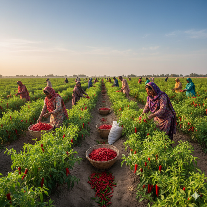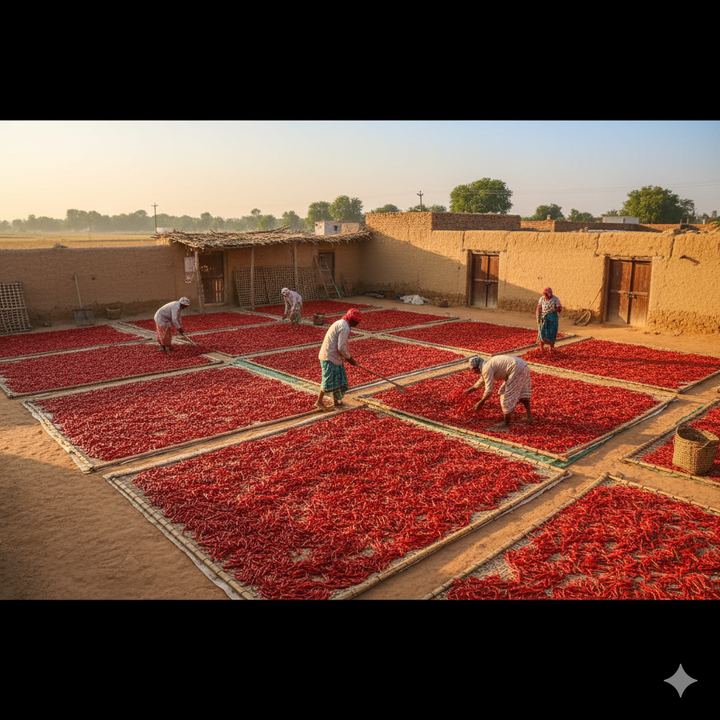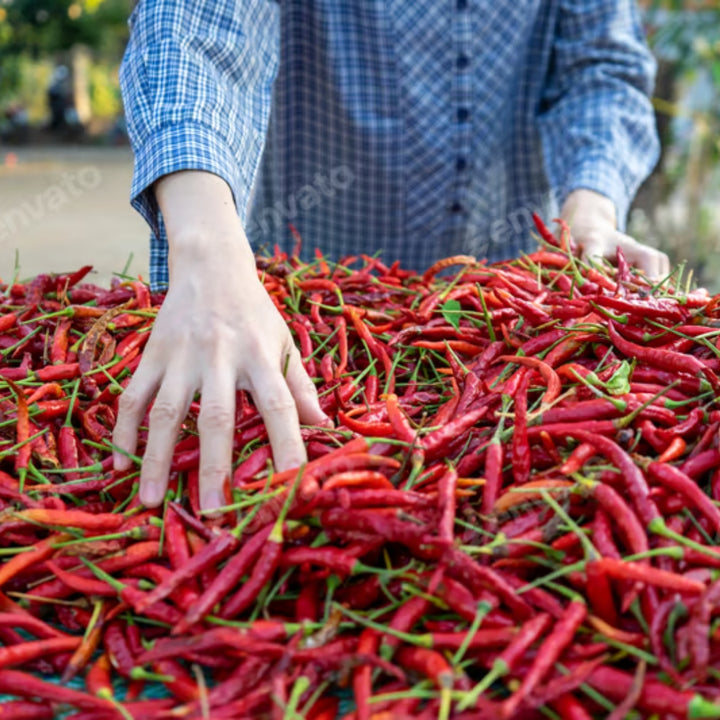 ہم اپنی مرچیں دیسی کھیتوں سے حاصل کرتے ہیں، پھر انہیں صاف، خشک اور جدید گرائنڈر مشینوں میں پِس کر پاؤڈر بناتے ہیں — تاکہ آپ کو ملے اصلی رنگ، اصلی تیکھا پن، اور مکمل خالص ذائقہ۔